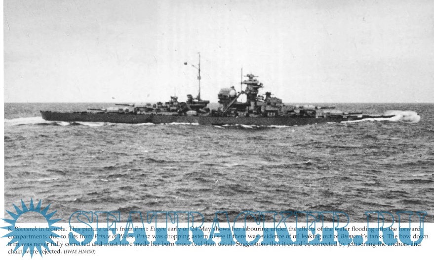 Description: When the German battleship Bismarck was commissioned in 1940 she was one of the fastest and most powerful ships afloat- To the Royal Navy and the security of Allied shipping in the Atlantic she posed an enormous threat - she must be destroyed. When she broke out into the Atlantic in 1941, some of Britain's most powerful ships were sent to pursue and sink her. The first encounter proved disastrous for the British battlecruiser HMS Hood, which was sunk at 0800 on 24 May. Bismarck had sustained several hits from HMS Prince of Wales but the Royal Navy were unsure of the extent of the damage and whether she would attempt to return to Germany for major repairs or sail for France to lick her wounds. Many earlier accounts of the actions which followed have misunderstood the roles played by radar on both sides and by ULTRA intelligence. In the event Bismarck was spotted by an RAF Catalina aircraft and then subjected to a dramatic series of attacks by Fleet Air Arm Swordfish torpedo planes. She was so badly damaged by the Swordfish that she became; uncontrollable and was caught and destroyed by the heavy ships of the Royal Navy. Both sides displayed the highest levels of courage, skill and-devotion to duty throughout the action.