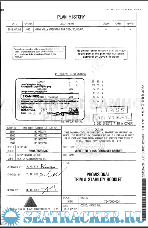 MV HANJIN TURKEY- 3600 TEU class container carrier- Provisional Trim and Stability booklet