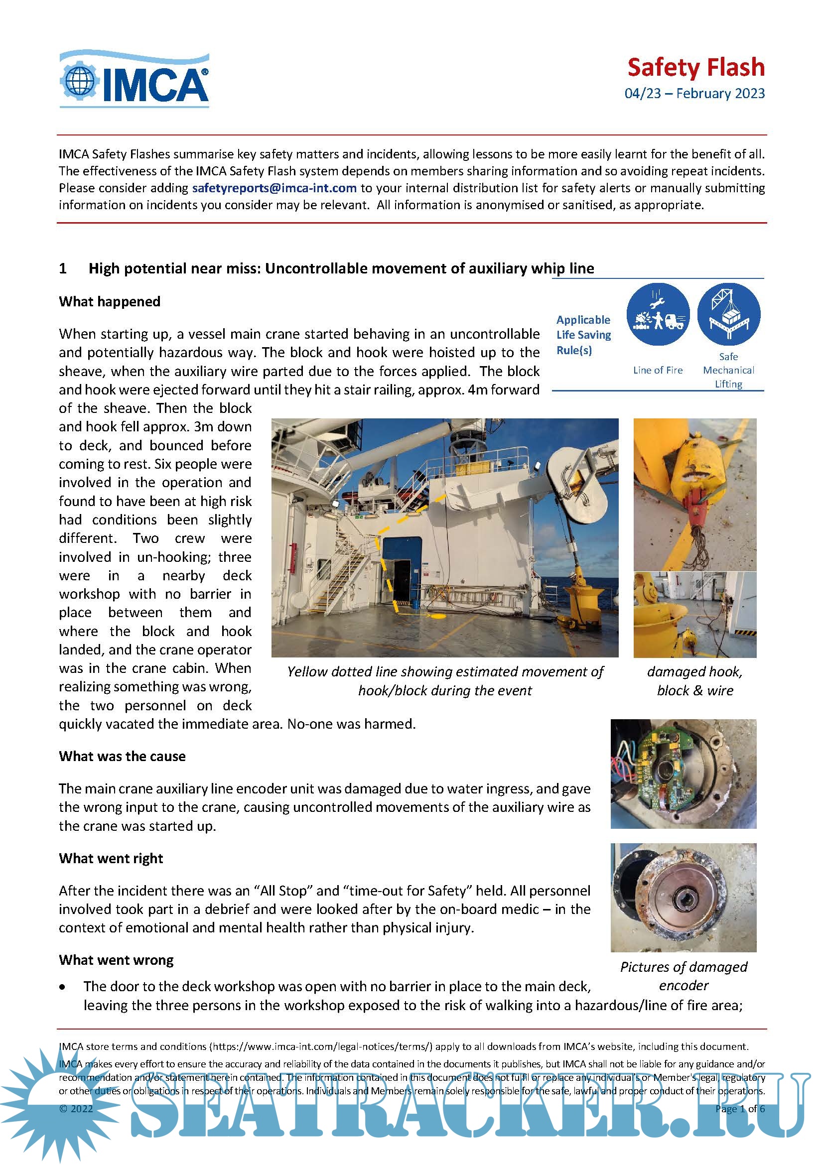 IMCA SF 04/23• High potential near miss: Uncontrollable movement of auxiliary whip line