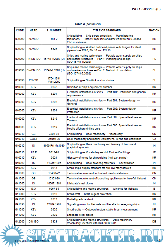Ships and marine technology — Maritime standards list ISO:15583