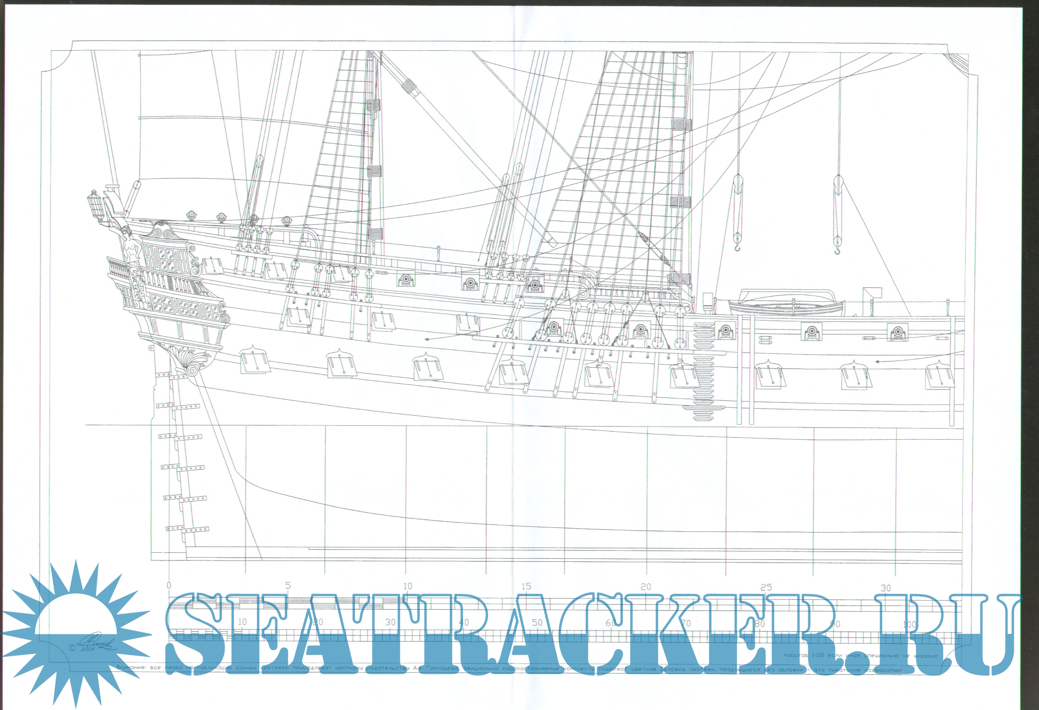 18 листов чертежей 66 пушечного корабля ''Святой Евстафий Плакида'' в масштабе 1:100Скриншоты