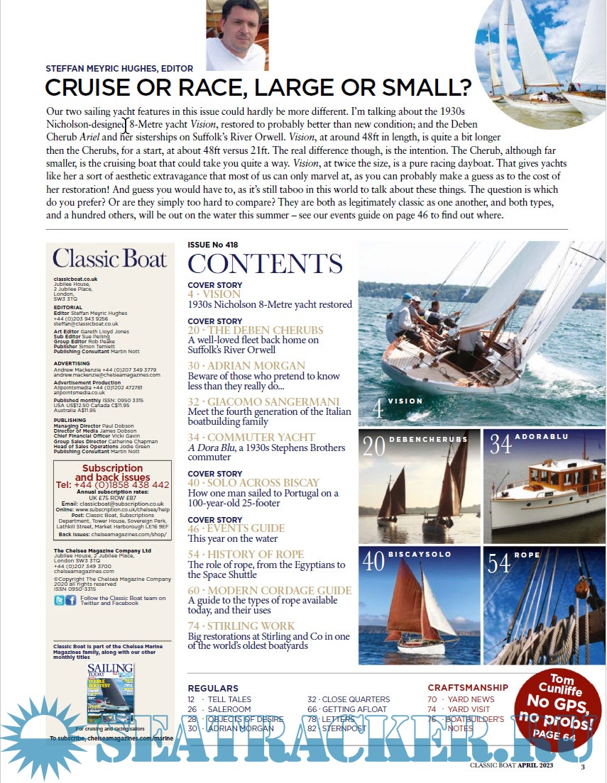 Description: Classic Boat is the magazine for the world’s most beautiful boats. Packed with stunning images, we have the inside stories of the great classic yachts and motorboats afloat today, as well as fascinating tales from yesteryear and the latest from the wooden boat building scene around the world.