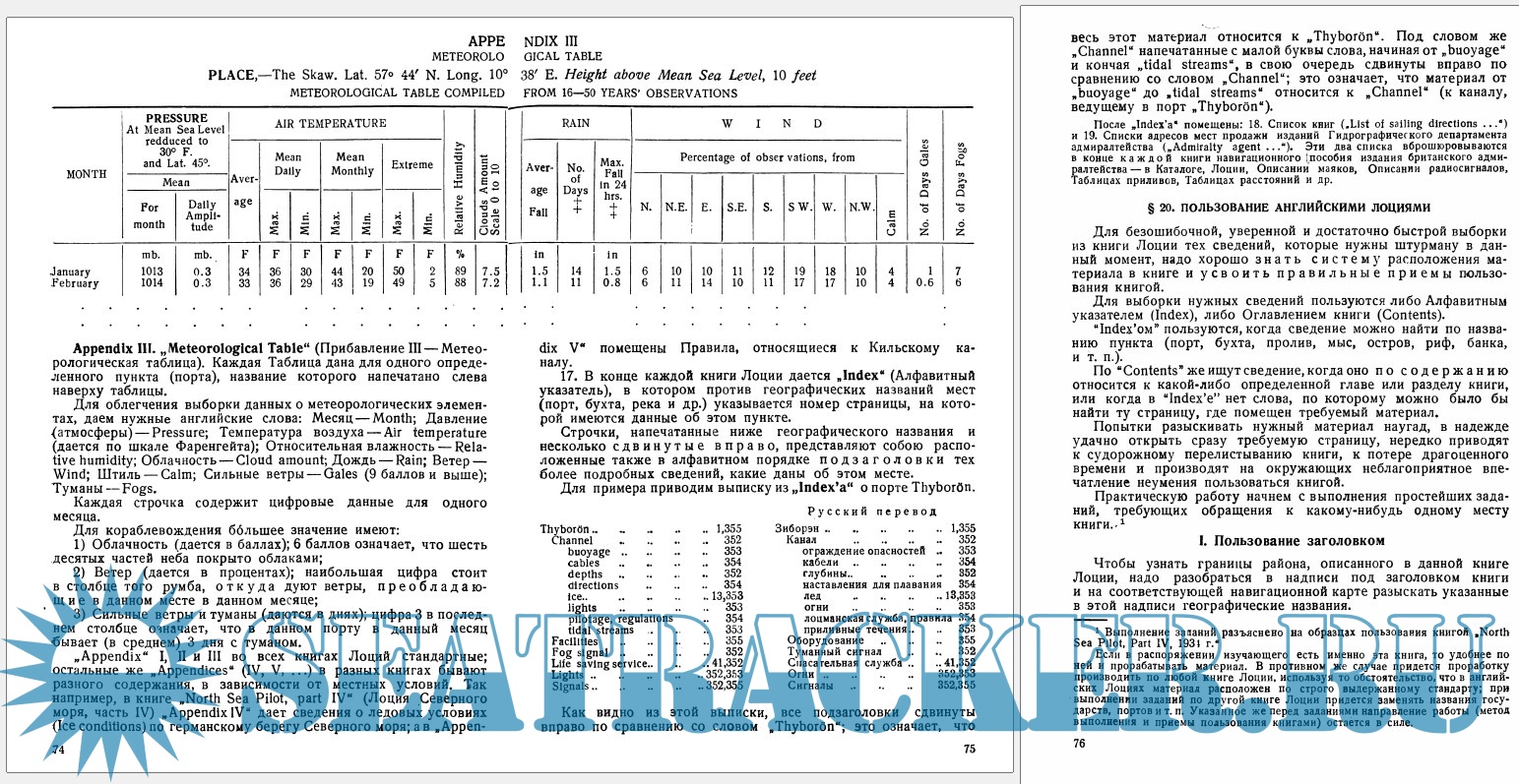 Описание: «Морская лоция», часть II содержит описание английских адмиралтейских навигационных пособии и дает практические указания по пользованию ими.