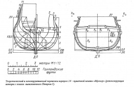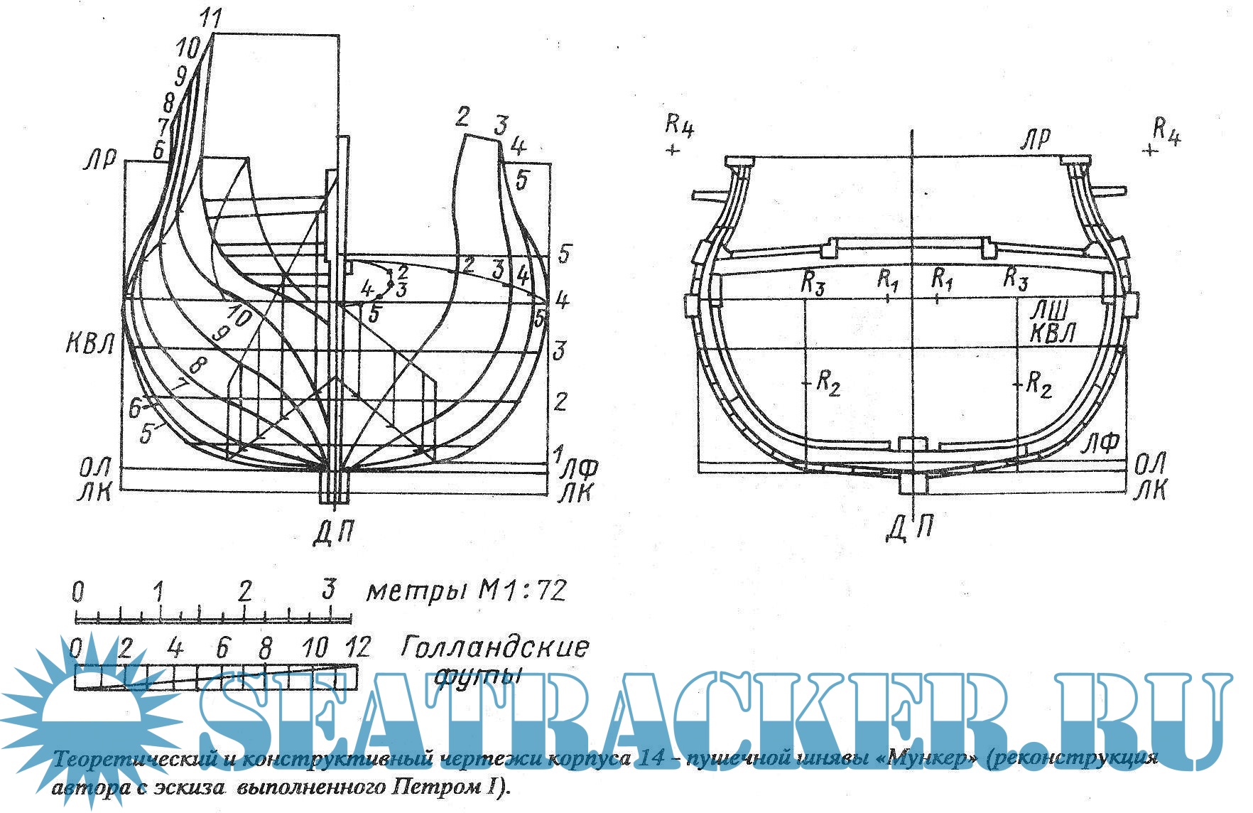 Описание: Чертежи выполненные Петром 1 14-ти пушечной шнявы "Мункер"
