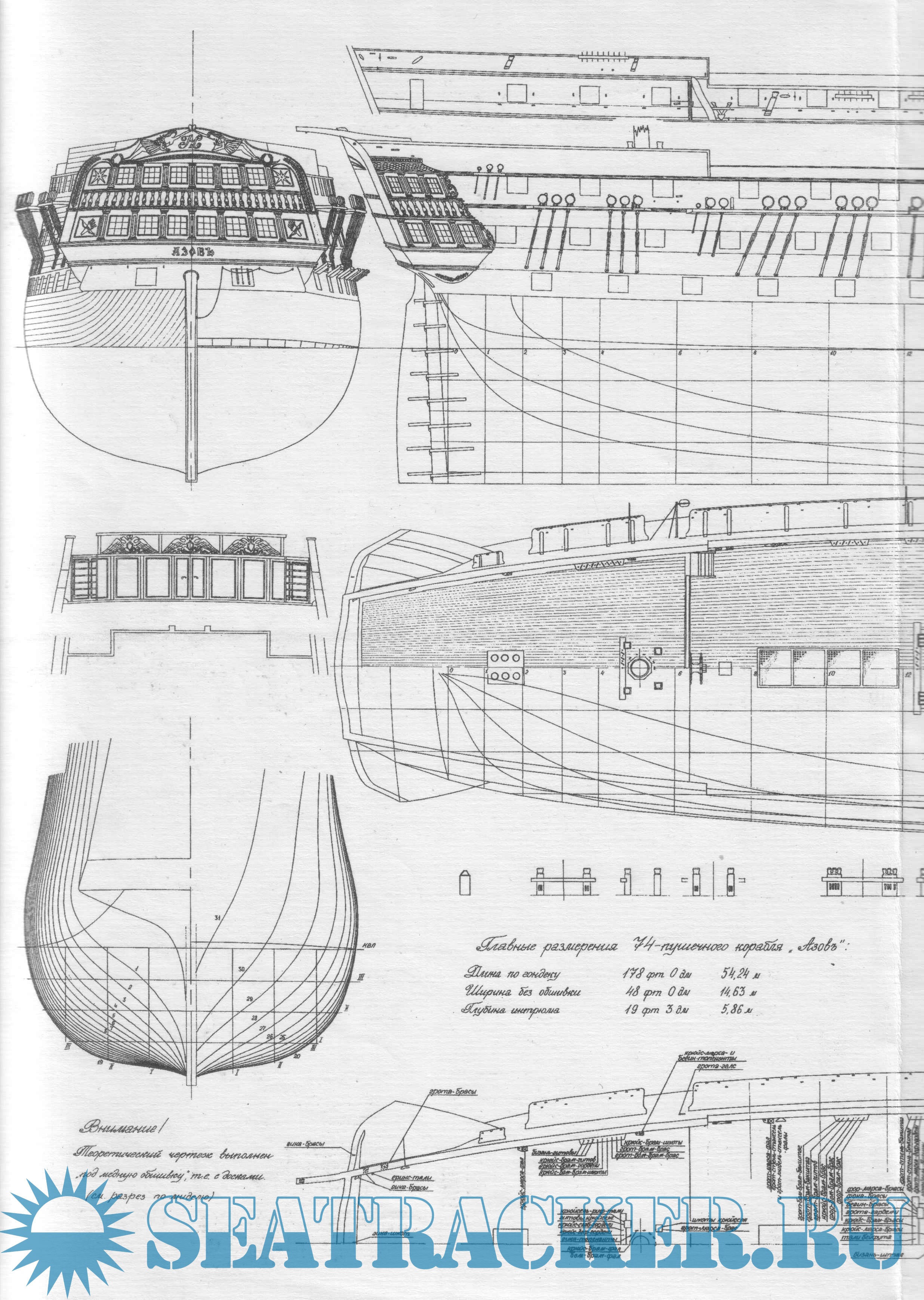 Описание: Чертежи 74-пушечного линейного корабля "Азов" в масштабе 1:100