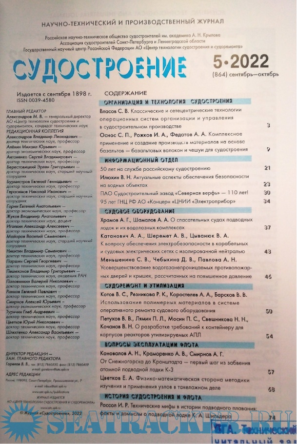 Журнал «Судостроение» ноябрь-декабрь - Горелов В.В. (зам. главного редактора) [2022, PDF]