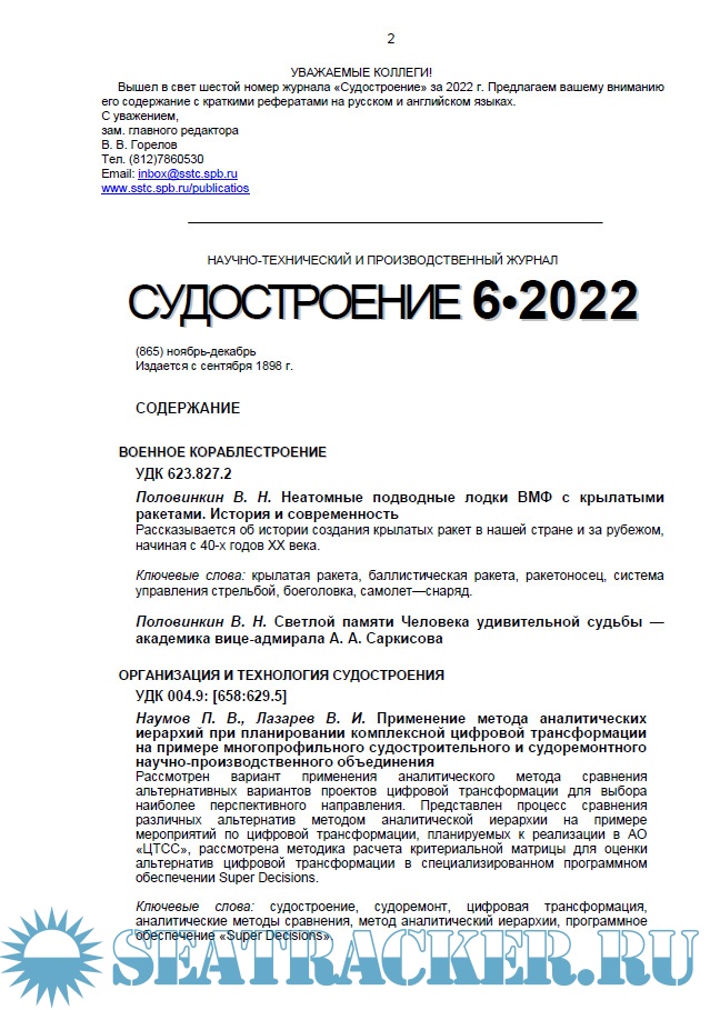 Журнал «Судостроение» сентябрь-октябрь - Горелов В.В. (зам. главного редактора) [2022, PDF]