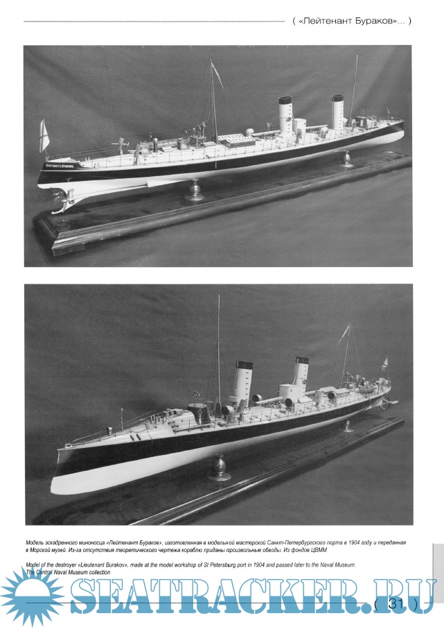 Описание: «Боевой» и «Лейтенант Бураков» - эти корабли оставили заметный след в истории Русско-японской войны 1904-1905 гг. Первый из них почти полгода был флагманским кораблем 1 -го отряда эскадренных миноносцев 1 -й Тихоокеанской эскадры, в составе которого принимал участие практически во всех боевых столкновениях с японскими кораблями. Второй миноносец благодаря своей скорости и военному счастью дважды прорывал японскую морскую блокаду Порт-Артура, обеспечивая связь со ставкой главнокомандующего адмирала Е.И. Алексеева.