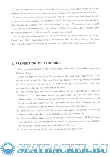Year: 2010 Language: english Author: Japan Coast Guard Genre: Guide Publisher: JCG Edition: September Format: PDF Quality: eBook Pages count: 7 Description: In the Japanese coastal waters, there have been a lot of casualties caused by timber carriers for the last several years, and many human lives and properties were lost. In many cases a lot of timber floated out from the carries have been threat to safe navigation for other vessels. For instance, some of fishing boats and/or other ordinary ships happened to collide with scattered timbers at sea. Furthermore, there might be additional apprehension that the timbers drifted by wind and/or current gave the serious influence to fishery and/or coastal environment. For the purpose of preventing the accidents caused by timber carriers, the Japan Coast Guard (JCG) has summed up a fundamental hints, in this brochure. We hope that you will confirm followings by yourself and make efforts for safe navigation.