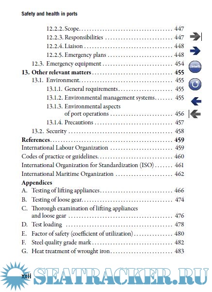 Year: 2018 Language: english Author: ILO Genre: Handbook Publisher: International Labour Office Edition: Revised 2016 ISBN: 978-922-129960-8 Format: PDF Quality: eBook Pages count: 526 Description: The revised 2016 edition of the ILO Code of practice on safety and health in ports was adopted by a Meeting of Experts held in Geneva from 21 to 30 November 2016, in accordance with a Governing Body decision at its 323rd Session (March 2015). The meeting was attended by 24 experts and their advisers – eight experts nominated by the Governments of Brazil, China, Germany, Kenya, Republic of Korea, the Netherlands, Nigeria and the United States; eight nominated by the Employers’ group of the Governing Body; and eight nominated by the Workers’ group of the Governing Body. Expert observers from other governments, and observers from intergovernmental and non-governmental organizations, also attended the meeting. The text revises and updates the 2005 edition of: Ilo code of practice safety and health in ports, which had replaced two former ILO publications: Guide to safety and health in dock work (1976) and Safety and health in dock work, An ILO code of practice (second edition, 1977). This code of practice is not a legally binding instrument. It is not intended to replace national laws and regulations or to affect the rights of workers provided by ILO instruments. It is designed to provide practical guidance to governments, ILO constituents and all those responsible for or involved in the management, operation, maintenance and development of ports. It is hoped that this code will help to raise the profile of safety and health issues in ports in all parts of the world, and contribute to the health, morale and well-being of port workers.