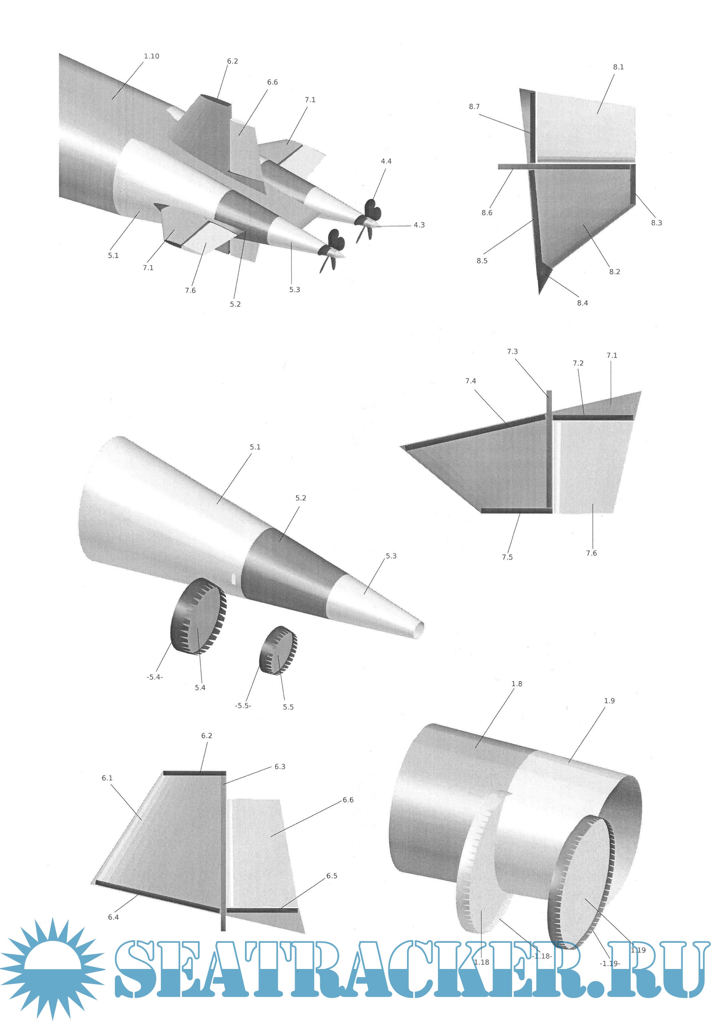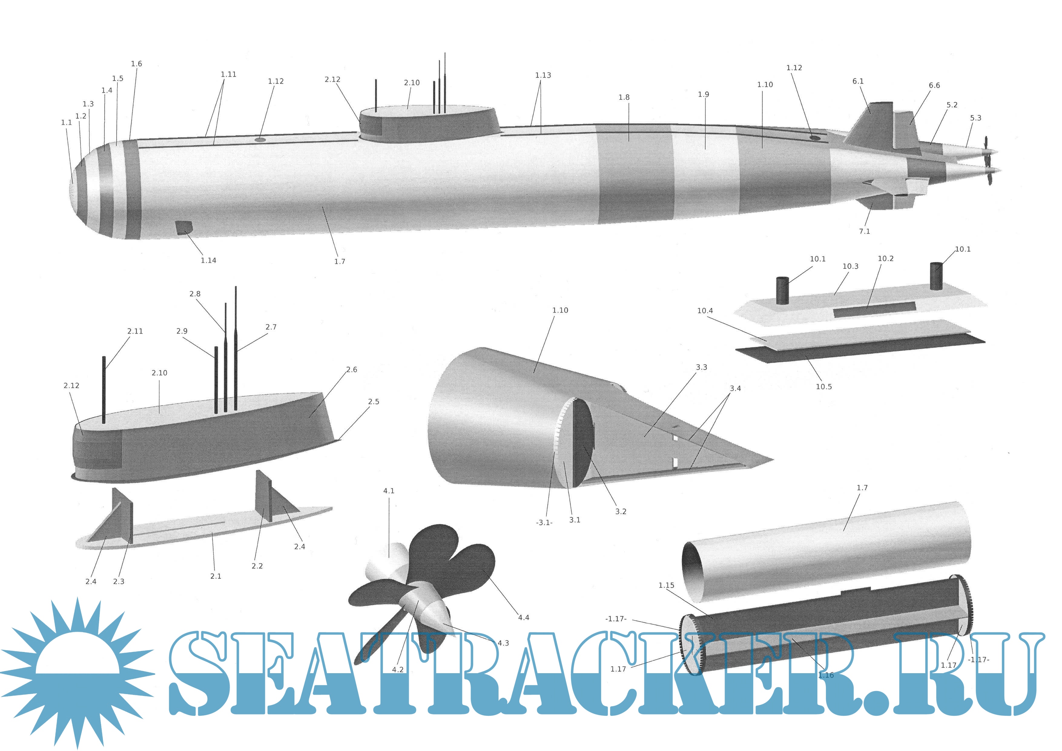 9 листов цветных выкроек и инструкций для изготовления бумажной модели атомной подводной лодки К-222 проект 661 "Анчар" в масштабе 1:200Скриншоты