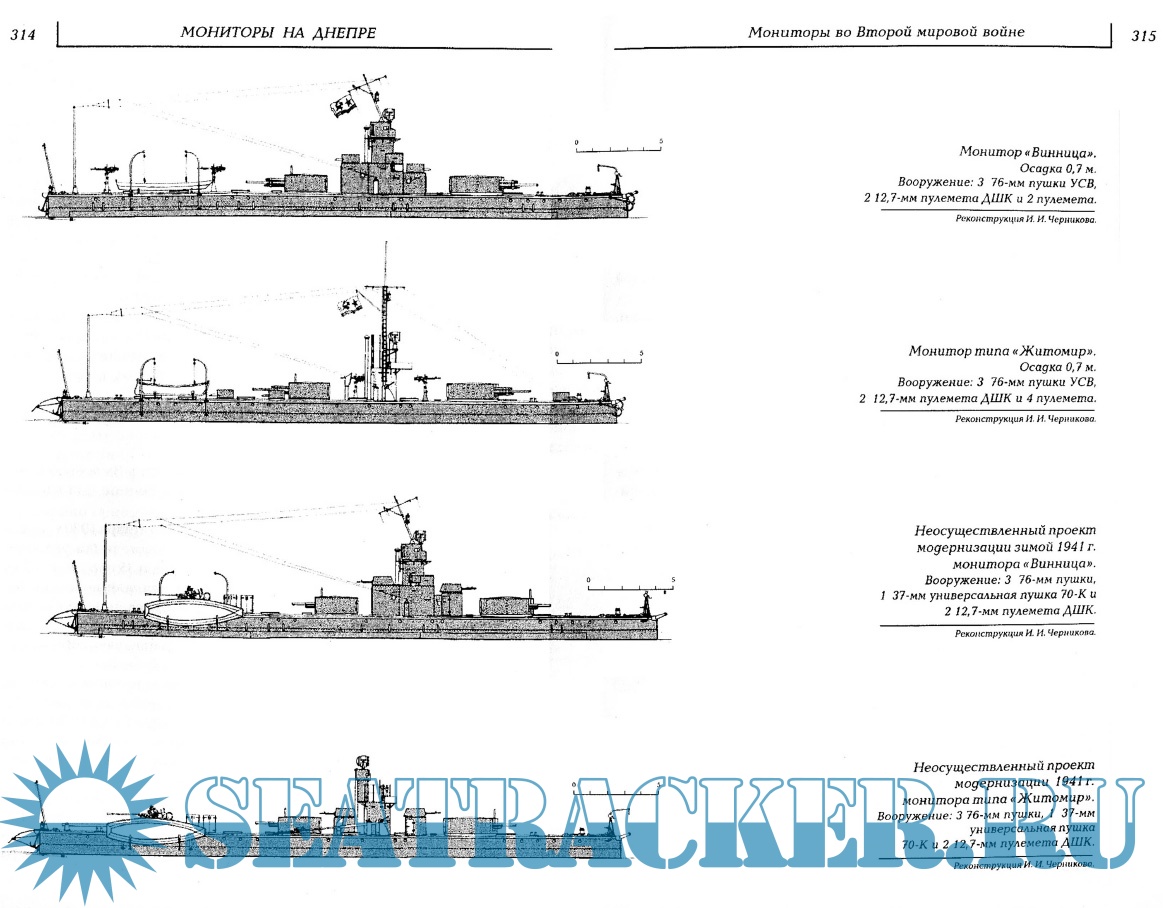 Особый интерес вызывают реконструкции отечественных кораблей 1939 — 1945 гг., выполненные автором. Эти чертежи из-за малочисленности сохранившихся документов по модернизации советских кораблей этого периода, представляют большой интерес для всех, интересующихся кораблестроением,