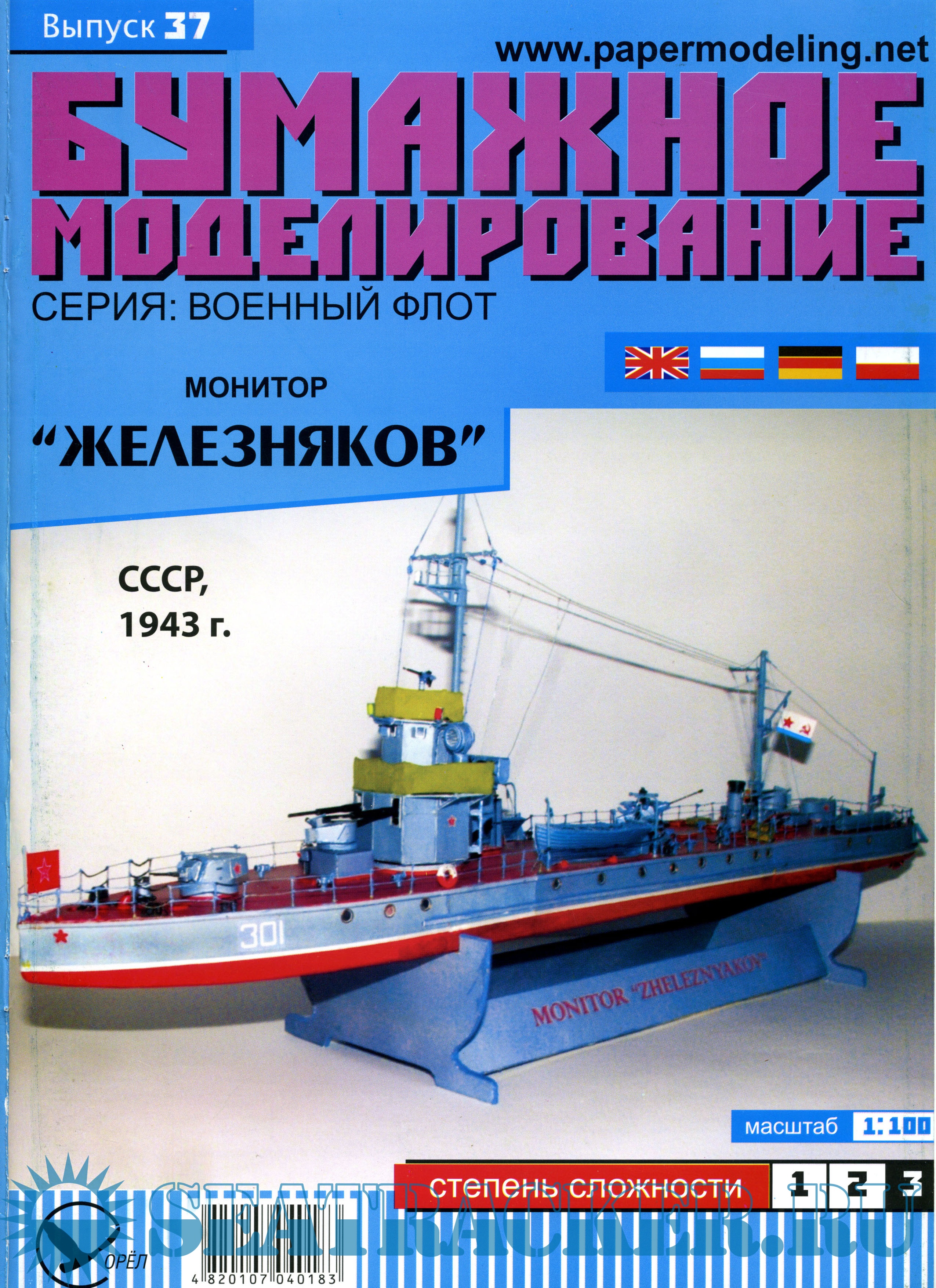 22 листа цветных выкроек и инструкций для создания бумажной модели монитора ЖЕЛЕЗНЯКОВ 1943 год в масштабе 1:100