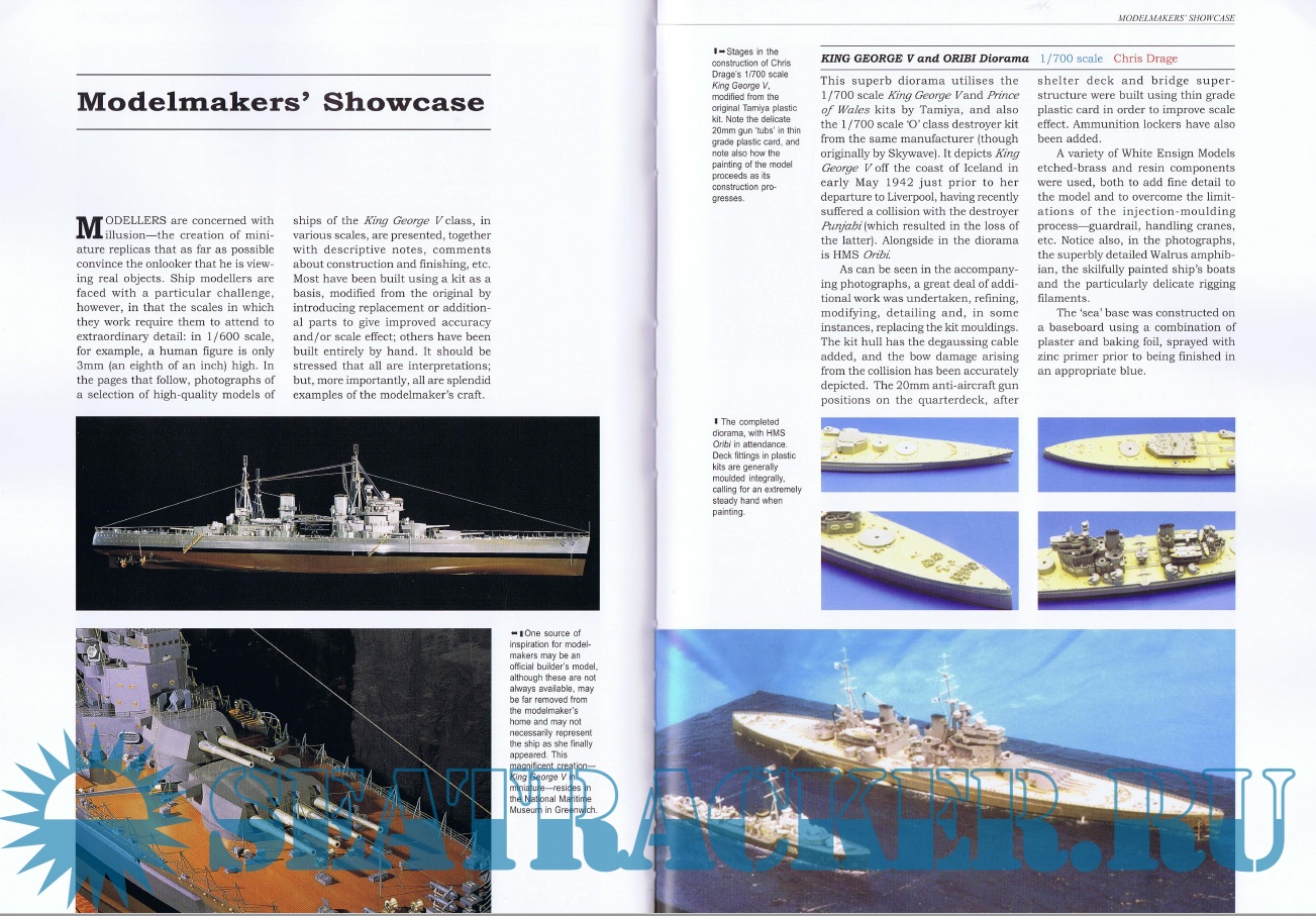 Year: 2004 Language: english Author: Roger Chesneau Genre: Technical book Publisher: Chatman Publishing Edition: ShipCraft 02 Format: PDF Quality: Scanned pages Pages count: 35 Description: The second volume in a new series providing ship modellers with all they need to know about a famous class of warship and associated model kits. The five battleships of the King George V class were the most modern to serve the Royal Navy in World War II; all rendered invaluable service in the war effort, and, indeed, the first two could be credited with influencing the very course of the conflict. Instrumental in the sinking of the battleship Bismarck, they bought about a fundamental shift in German naval policy, the emphasis moving away from heavy surface ships and towards the U-boat arm. With its unparalleled level of visual information - colour schemes, models, line drawings and photographs - it is simply the best reference for any modelmaker setting out to build one these great battleships.