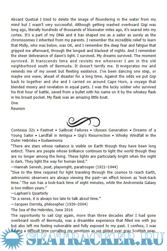Year: 2018 Language: english Author: Kretschmer J. Genre: Manual Publisher: Bloomsbury Publishing ISBN: 9781472951649 Format: EPUB Quality: eBook Pages count: 194 Description: John Kretschmer is sailing's practical philosopher – as much a doer as a thinker. And that is the overarching theme of this chronicle of a sailing life. Often amusing, sometimes poignant, occasionally terrifying but always inspiring, his deeply personal account is a welcome reminder of the good life waiting at sea. With hundreds of thousands of nautical miles under his keel, John's adventures have taken him several times around the world, with challenging crossings of the Atlantic and the Pacific, a narrow escape from a coup in Yemen, an unlikely deliverance from a coral reef off Belize as well as more serene, introspective passages where trade winds are blowing and stories are flowing. His crew has included CEOs, actors, writers, teachers, kids – in essence, everyone. John's narrative is interwoven with practical tips and advice in seamanship, but also, and just as importantly, his hard-won insights about making the most of our lives. He truly believes we find out who we really are, and what we are capable of, far from the shackles of land, when we find a place where time changes shape – days may merge into one another, but minutes are memorable. To live adventurously is to live more fully, and that is the life John Kretschmer continues to live. In this book he shares his simple profundities that will inspire those who live to sail, and those seeking something more rewarding from life. Additional info: About the Author John Kretschmer is a writer, sailor, philosopher, lecturer, and businessman whose successful sail-training business aboard Quetzal takes a uniquely philosophical but hands-on approach to offshore sailing. He is the author of four highly regarded non-fiction books, including Sailing a Serious Ocean, and At the Mercy of the Sea, as well as hundreds of articles for the sailing press, Life, and the LA Times.