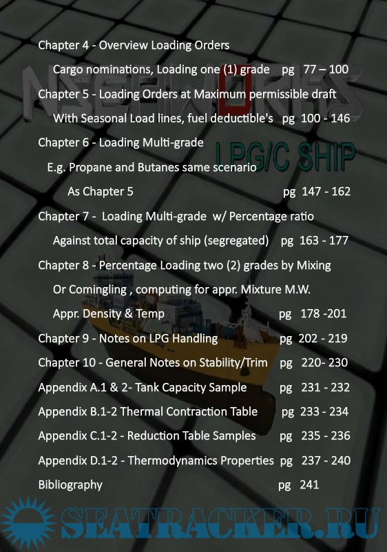 This book is specifically designed for Gas Carrier type of vessels especially LPG Ships of any size carrying fully­ refrigerated cargoes such as Propane, Butane, Mixture of both, Ethylene, Ammonia and other chemical gases in nature car­goes. It encompasses operation methods in Semi­-Pressurized, Fully-Refrigerated and Fully-Pressurized containment system. It also provides succinct discussion of cargo operation procedures and stability techniques pre­sented in layman's terms and easy understanding.