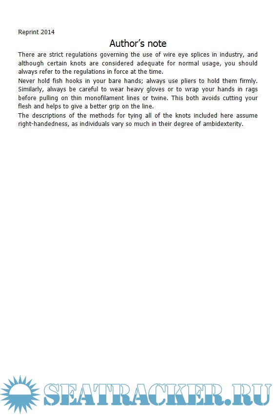 Year: 2015 Language: english Author: Avery D. Genre: Manual Publisher: G2 Rights ISBN: 1782811184 Format: EPUB Quality: eBook Pages count: 226 Description: A New Colour reference book that includes knots, turns, bends, and hitches together with decorative knots, plaits, sennits and mats. Full explanations are given of the different types of rope and rope construction, with over 250 entries and as many step-by-step colour illustrations.