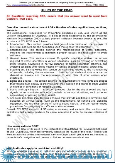 Chief Mate F.G. MMD, India Orals Exams Notes Based on Frequently Asked Questions: Function 2 -…