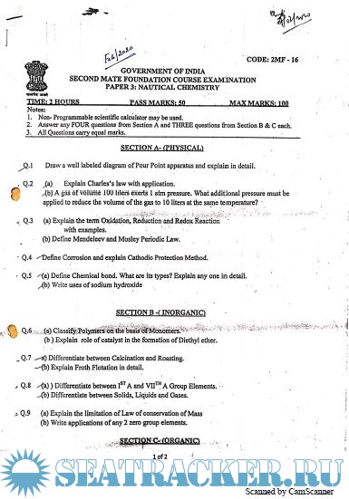 Question Paper Set for Second Mate (Foundation Course) Mercantile Marine Department (MMD), India Examinations