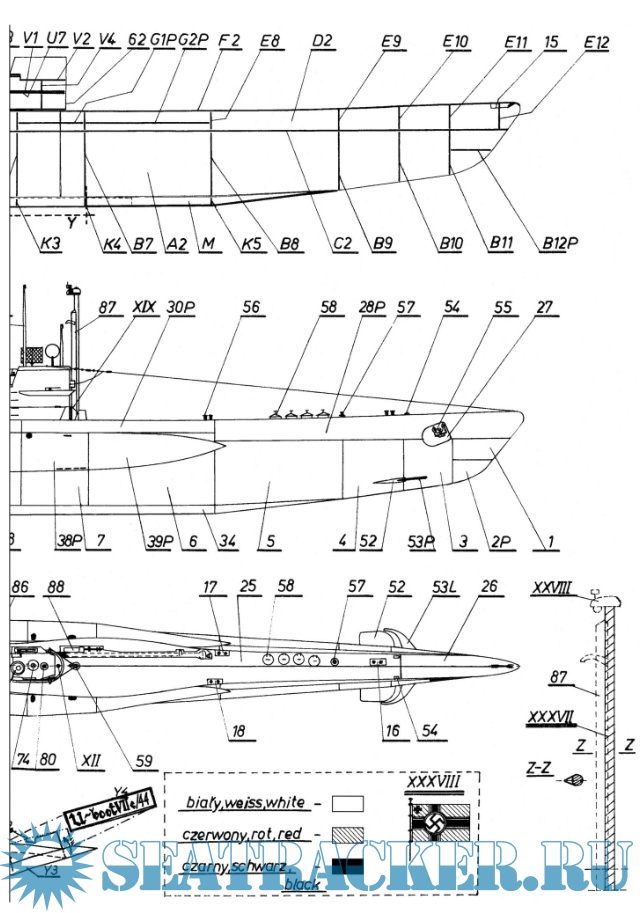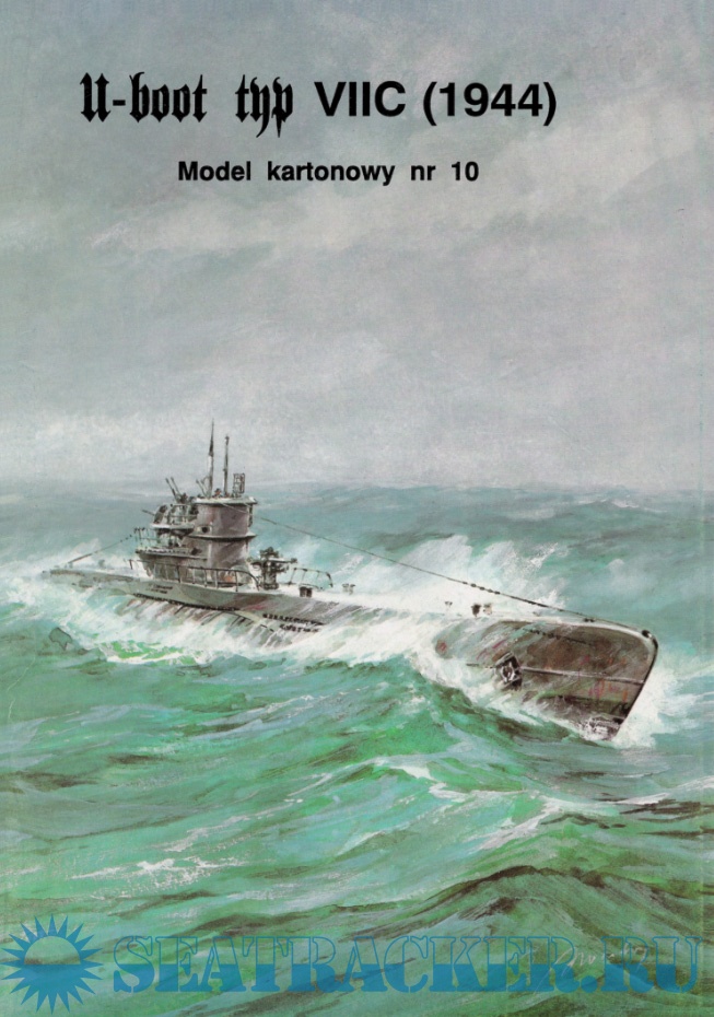 15 листов цветных выкроек и инструкций по изготовлению модели из бумаги германской подводной лодки типа VIIC 1944 год в масштабе 1:100