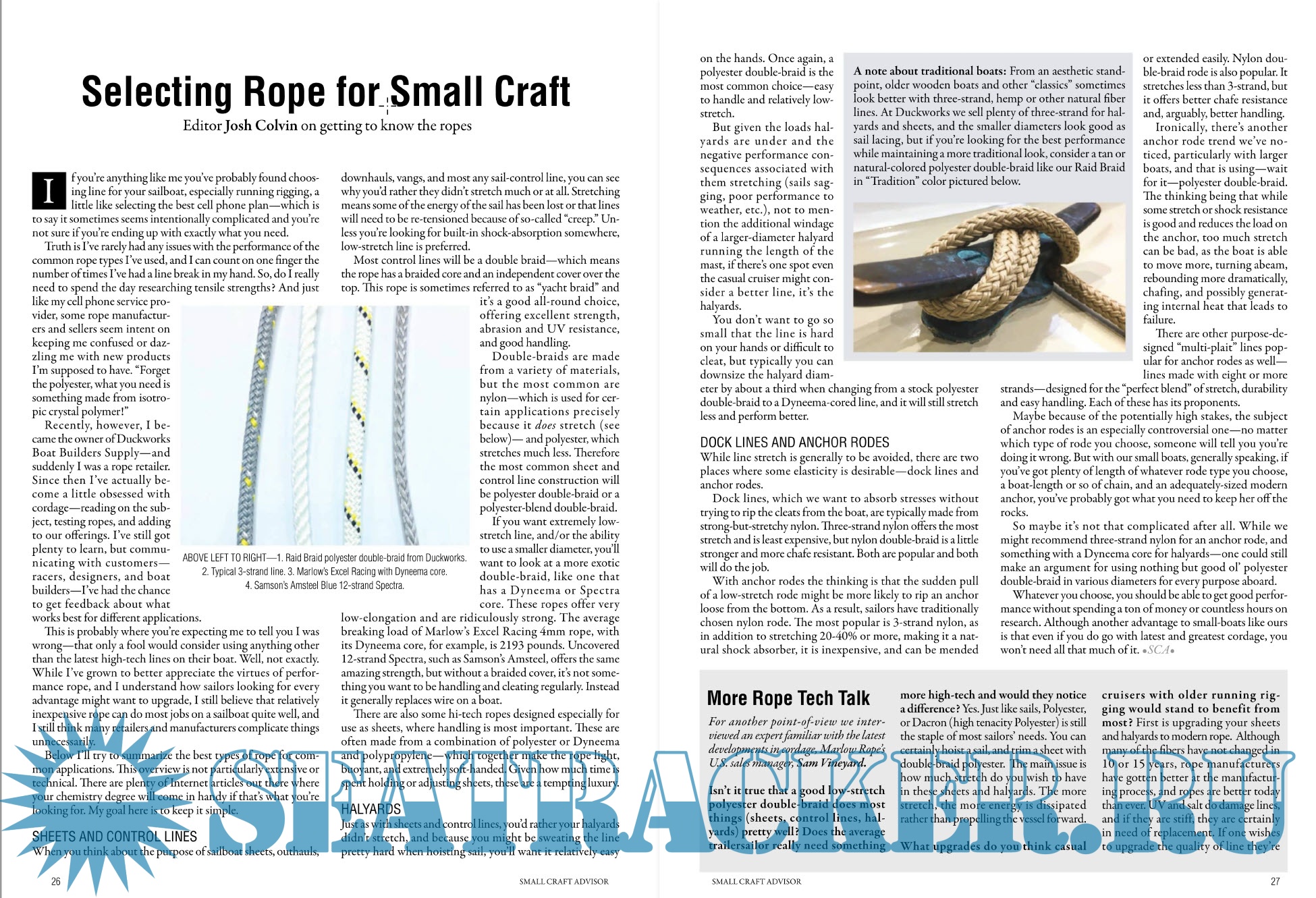 Description: Small boats, big adventure! The only magazine focused on small and trailerable sailboats, cruising, and adventure. Each issue features places to sail, how-to and modification articles, a plan study for the boat builder, and a feature-length review of a production sailboat.