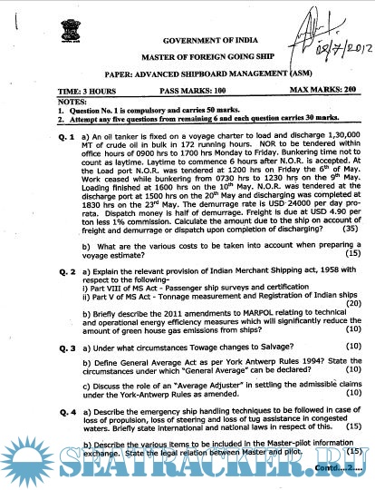 Question Paper Set for Advanced Ship Management (ASM) Mercantile Marine Department (MMD), India…