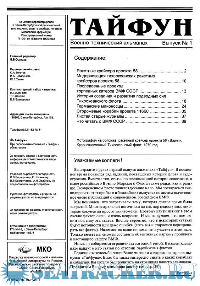 Описание: Военно-технический альманах "Тайфун" - периодическое издание о прошлом, настоящем и будущем Военно-морского флота.