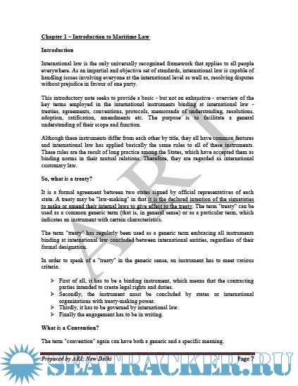 Description: Notes on Maritime Law repared as per Mercantile Marine Department (MMD), India Exams Syllabus by Applied Research Institute (ARI), New Delhi, India.