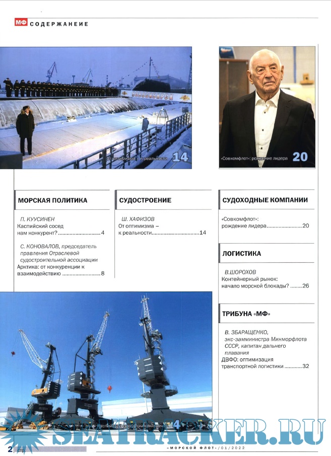 Описание: Информационно-аналитический журнал «Морской флот» освещает деятельность российского судоходства и всех процессов, связанных с морскими перевозками внешнеторговых грузов РФ. Первый номер журнала вышел 1886 году.