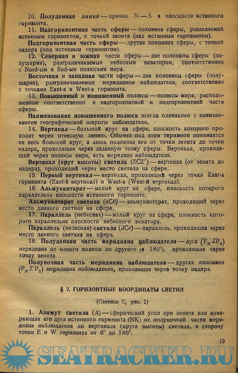 Горизонтальные координаты светил.