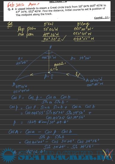 Navigation - Solved Numericals Great Circle and Composite Great Circle (2014-2012) from Past…