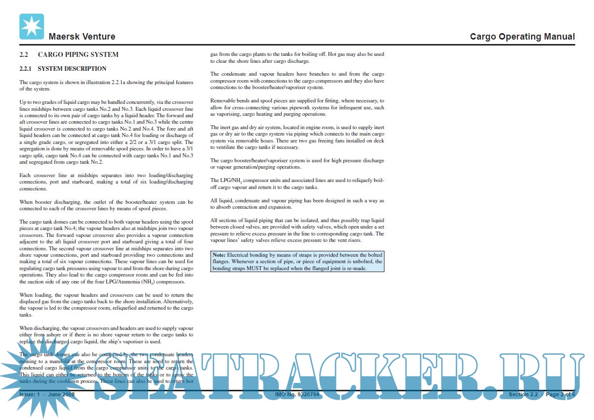 Year: 2008 Language: english Author: Worldwide Marine Technology Ltd Genre: Manual Publisher: Worldwide Marine Technology Ltd Format: PDF Quality: eBook Pages count: 1036 Description: BW OAK is a LPG carrier built in 2008 by HYUNDAI SAMHO HEAVY INDUSTRIES CO. LTD. - INCHEON, SOUTH KOREA. Currently sailing under the flag of India. Formerly also known as BW OAK, MAERSK VENTURE. It's gross tonnage is 47386 tons. There are three operating manuals - for deck, cargo and machinery. Additional info: Pdf files contain bookmarks for easy navigation.