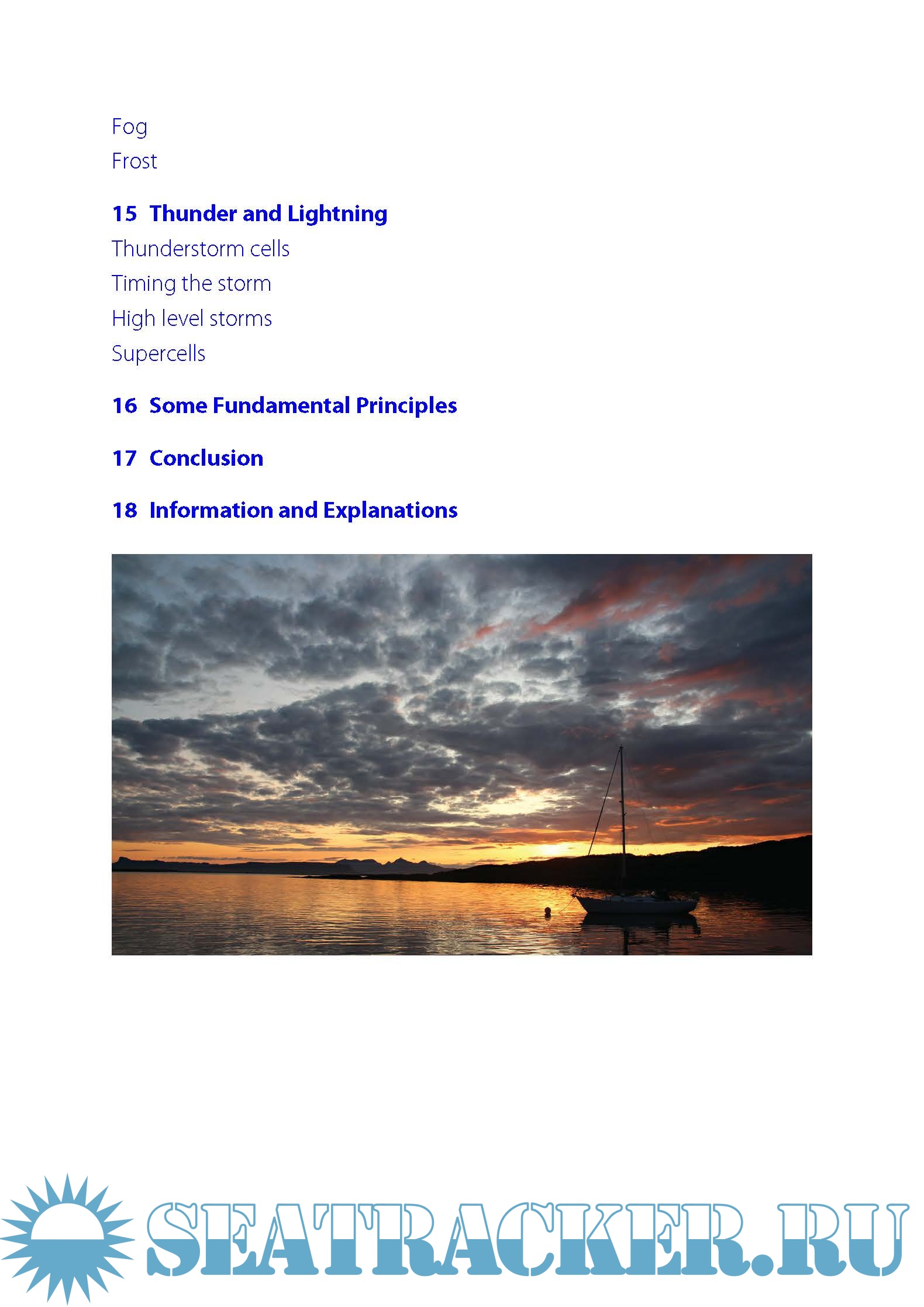 Year: 2020 Language: english Author: Alan Watts Genre: Handbook Publisher: Adlard Coles Edition: 4th ISBN: 9781472978493 Format: EPUB Quality: eBook Pages count: 160 Print length Description: The fourth edition of this bestselling book explains how to combine professional weather forecasts with information from self-assessment of the signs in the sky, as well as from websites and apps, to arrive at a local forecast of coming weather. The Weather Handbook is the essential guide to how the weather is formed, providing readers with the ability to look at the sky and interpret its signs. This handbook has been the standard reference for over 20 years for skippers and crews of cruising and racing yachts. The fourth edition has been updated and expanded with new photos and explanatory text, addressing new sources of weather information. There are countless websites and apps providing forecast data, and The Weather Handbook guides users in how to use and interpret this information for themselves, taking a general forecast for a wide area to provide a local forecast for a specific location. "The perfect introduction to understanding weather" - Practical Boat Owner