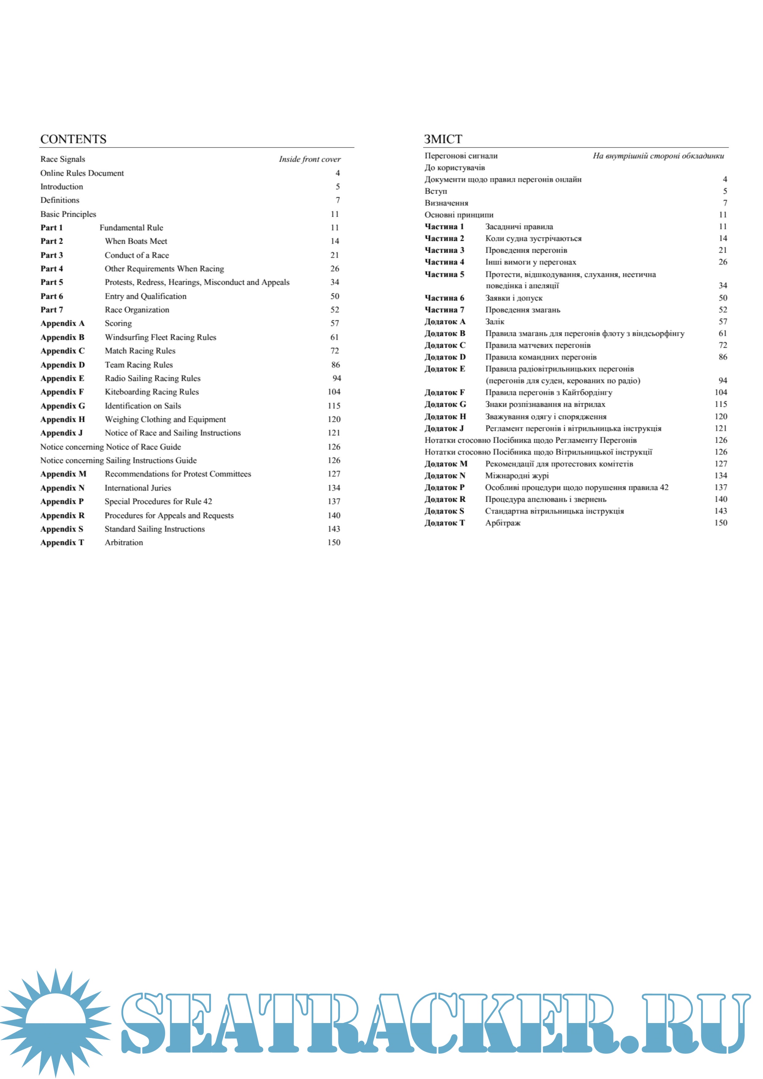 Правила Вітрильницьких Перегонів містять два головні розділи. Перший, де у Частинах 1 – 7 містяться правила, що стосуються всіх змагунів.