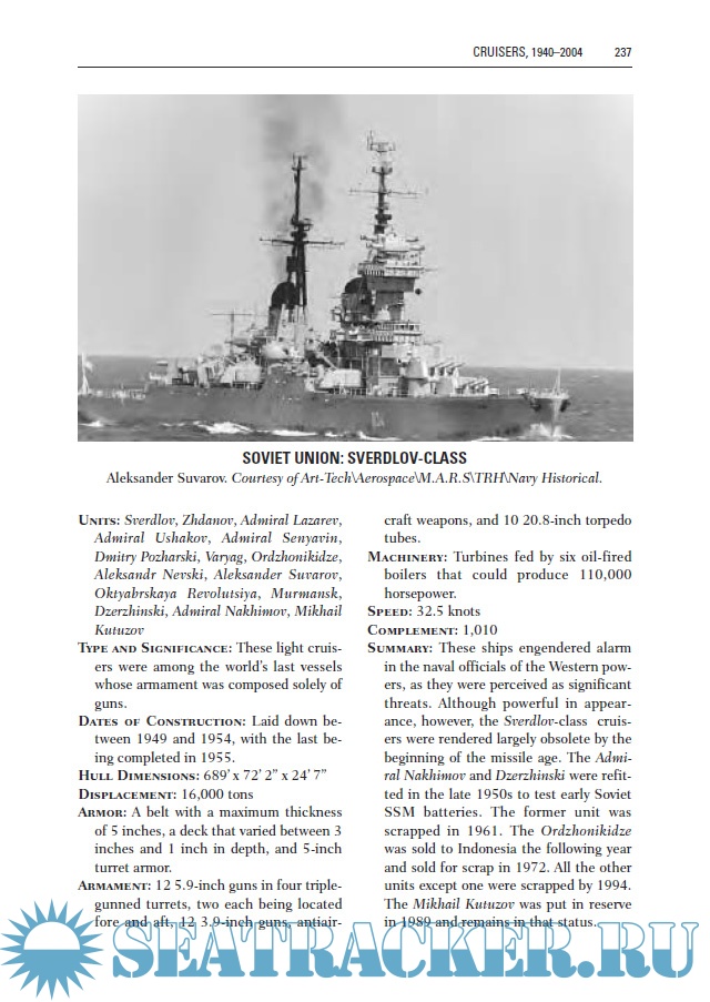 Year: 2004 Language: english Author: Eric W. Osborne Genre: History Publisher: ABC-CLIO Edition: Weapons and Warfare Format: PDF Quality: Scanned pages Pages count: 300 Description: Cruisers and Battle Cruisers explores the pivotal importance of cruiser-class ships to naval warfare and, in a wider scope, world politics. In vivid but accessible detail, it describes the milestones of cruiser design and deployment from mid-19th century development of steam-propelled, ironclads to the World War I introduction of battle cruisers; from the decisive naval engagements of World War II and the addition of missiles and computerized systems to the most recent developments. Readers will see how specific technological changes progressively increased the destructive power of cruisers and altered their combat roles, how design innovations altered the quality of life aboard ship, and how cruisers came to be called upon to serve a variety of noncombat roles in war and peace.