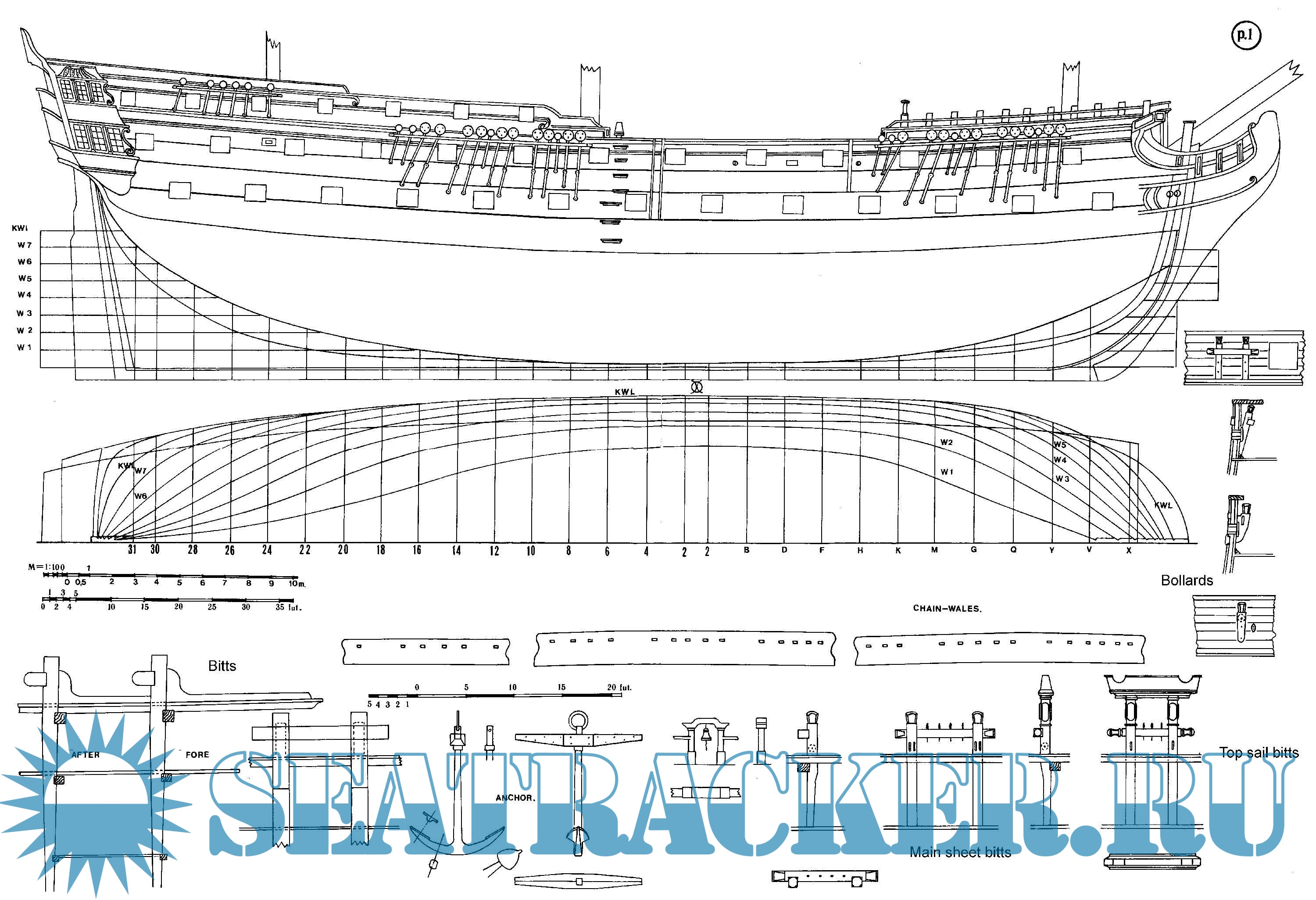 41 лист чертежей 66-пушечного линейного корабля "Победоносец" 1780 годСкриншоты