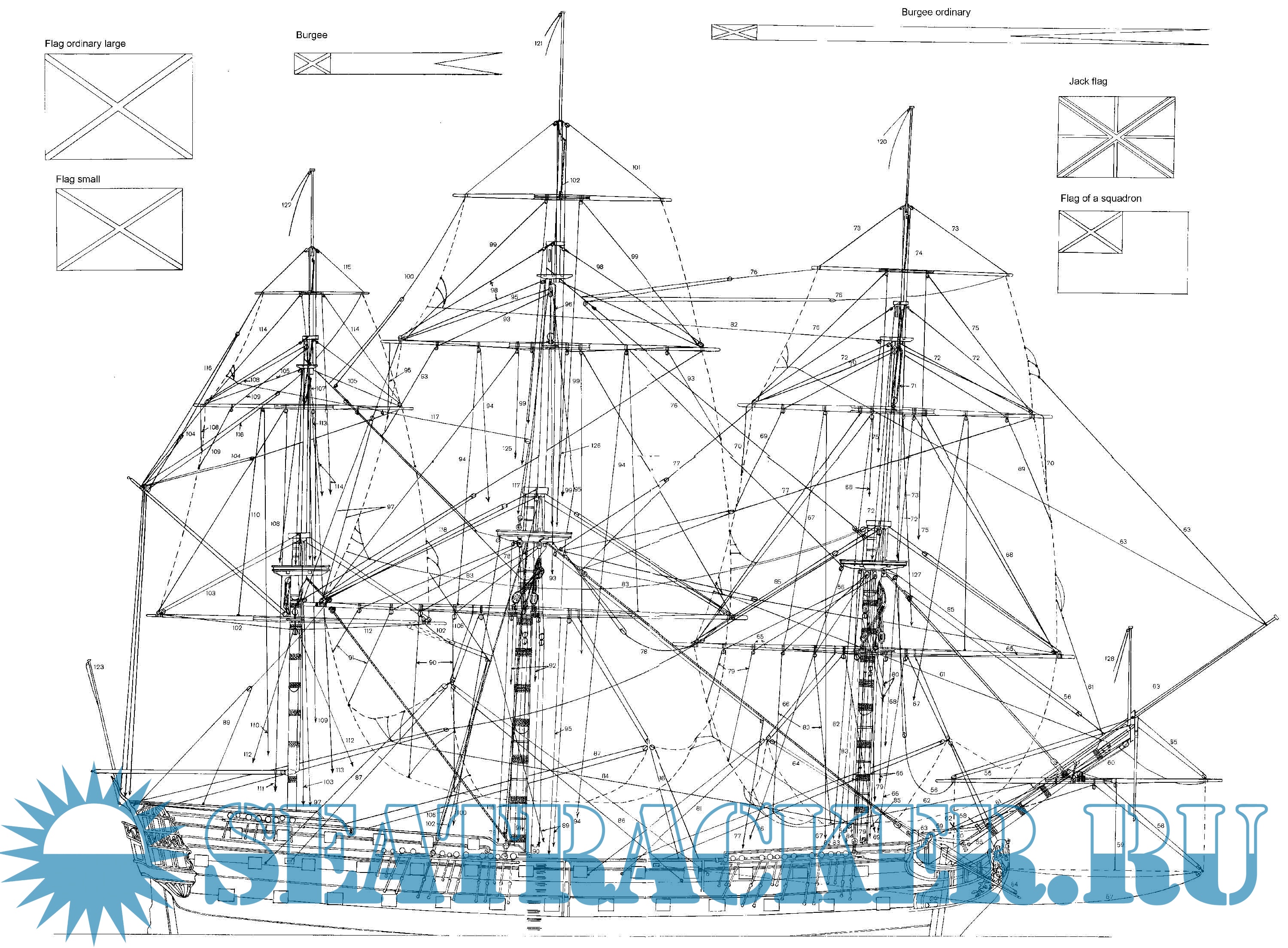 Чертежи 66-пушечного линейного корабля "Победоносец" 1780 год
