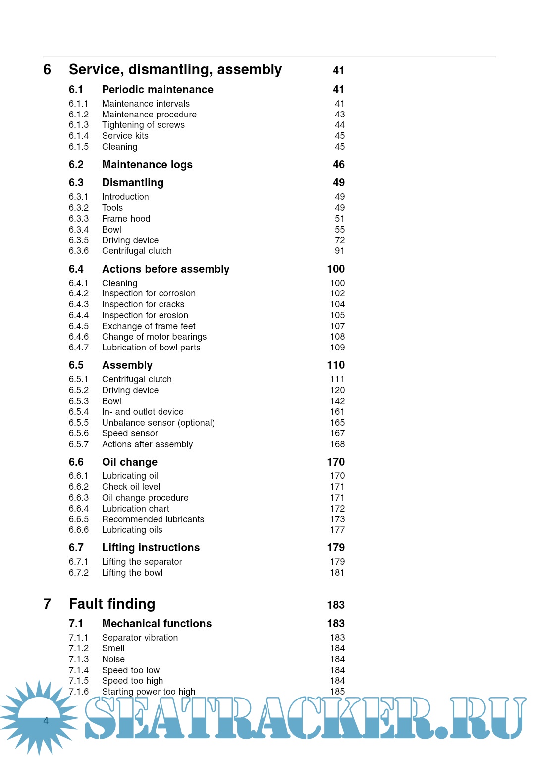 This chapter gives instructions for the maintenance procedures. It also contains step-by-step instructions for dismantling and assembly of the separator for service and repair