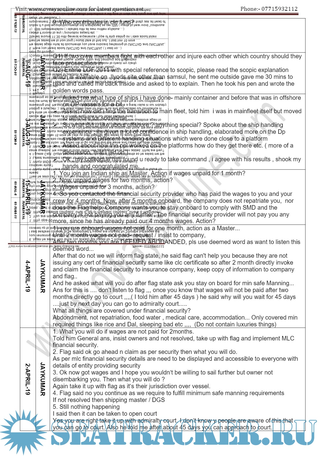 Orals Question Bank (February 2024) for ASM (Advanced Shipboard Management) / Master's…