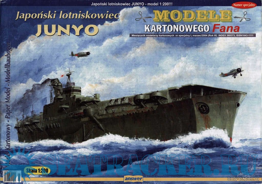Описание: 64 листа цветных выкроек и инструкций для изготовления бумажной модели японского авианосца Junyo в масштабе 1:200