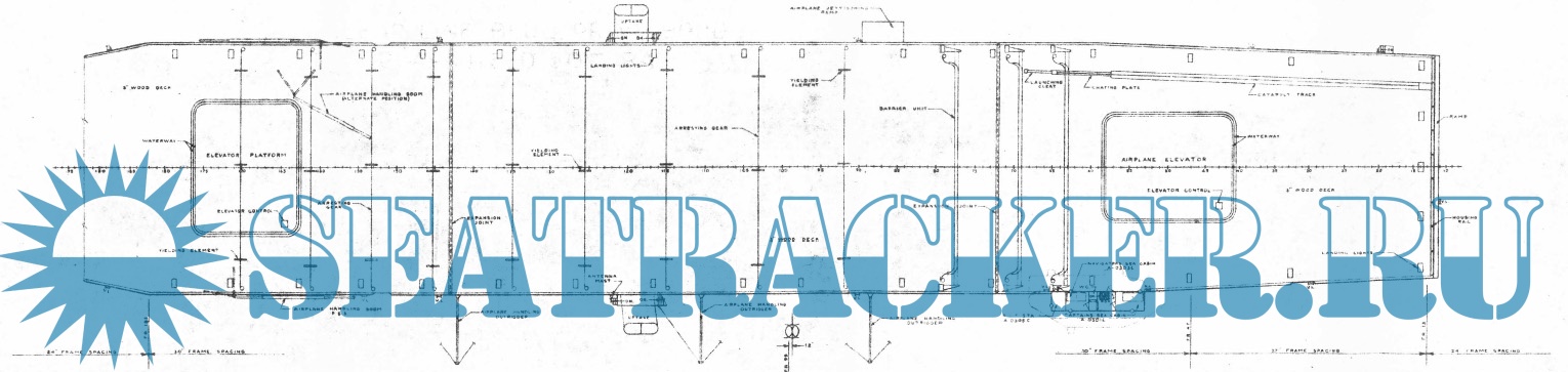 Архивные чертежи эскортного авианосца США CVE-53 USS Willapa (D79 - HMS Puncher) (тип Bogue) по состоянию на 1944 год.