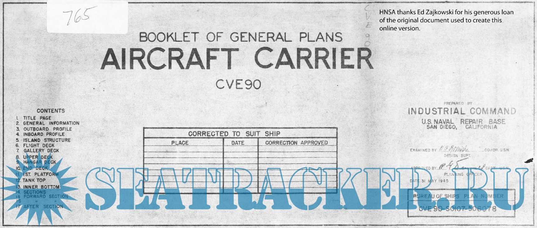 Архивные чертежи эскортного авианосца США CVE-90 - USS Thetis Bay (тип Casablanca) на 1945 год