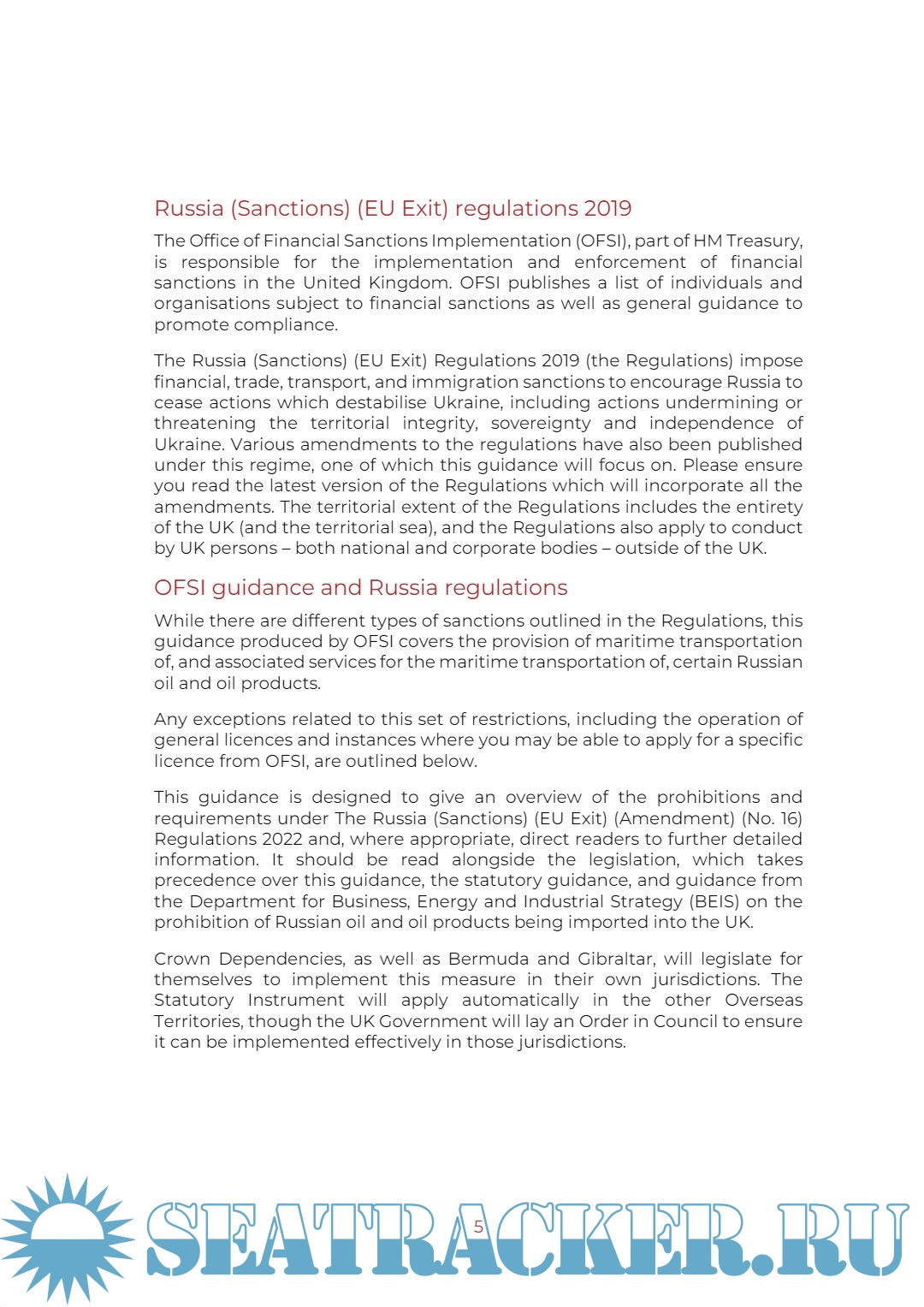 Description: Guidance for the UK ban on the provision of maritime transportation of, and associated services, for certain Russian oil and oil products.