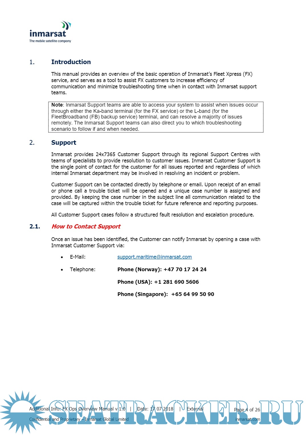 Description: This manual provides an overview of the basic operation of Inmarsat’s Fleet Xpress (FX) service, and serves as a tool to assist FX customers to increase efficiency of communication and minimize troubleshooting time when in contact with Inmarsat support teams.