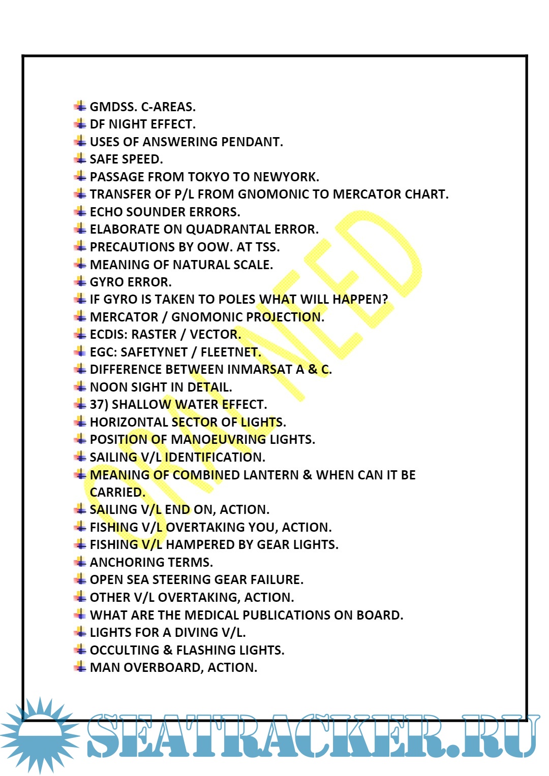 Description: Notes for the Second Mate: Function 1 Questions.