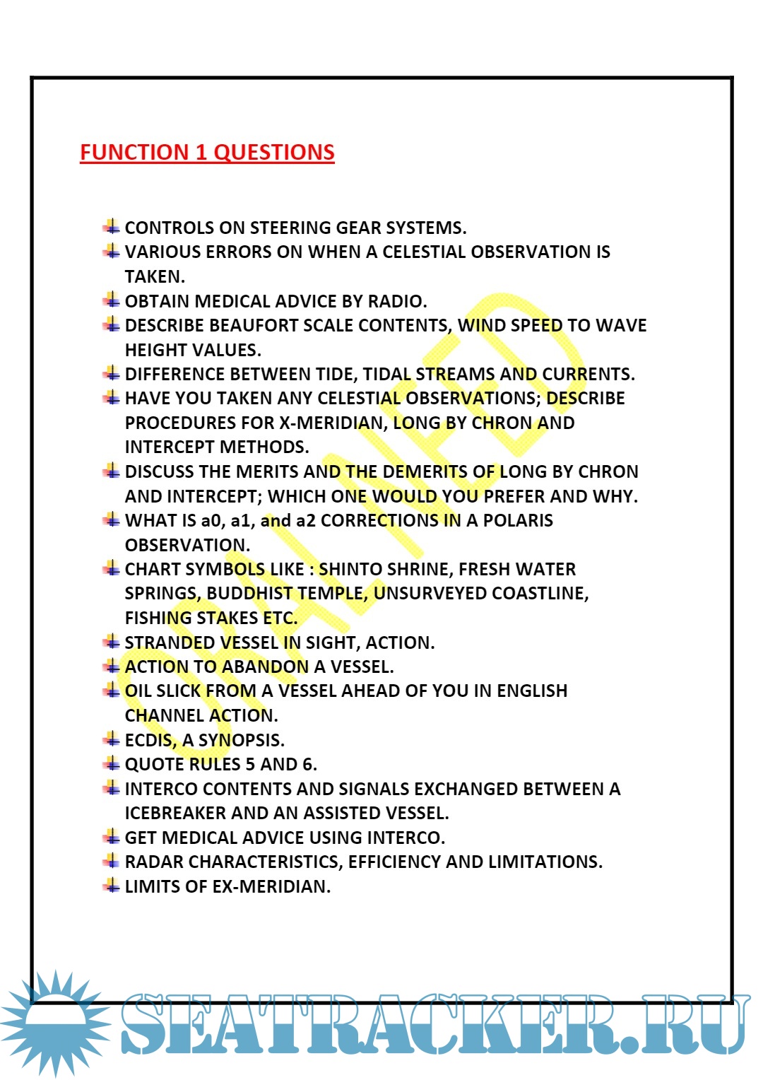 Notes for the Second Mate: Function 1 Questions