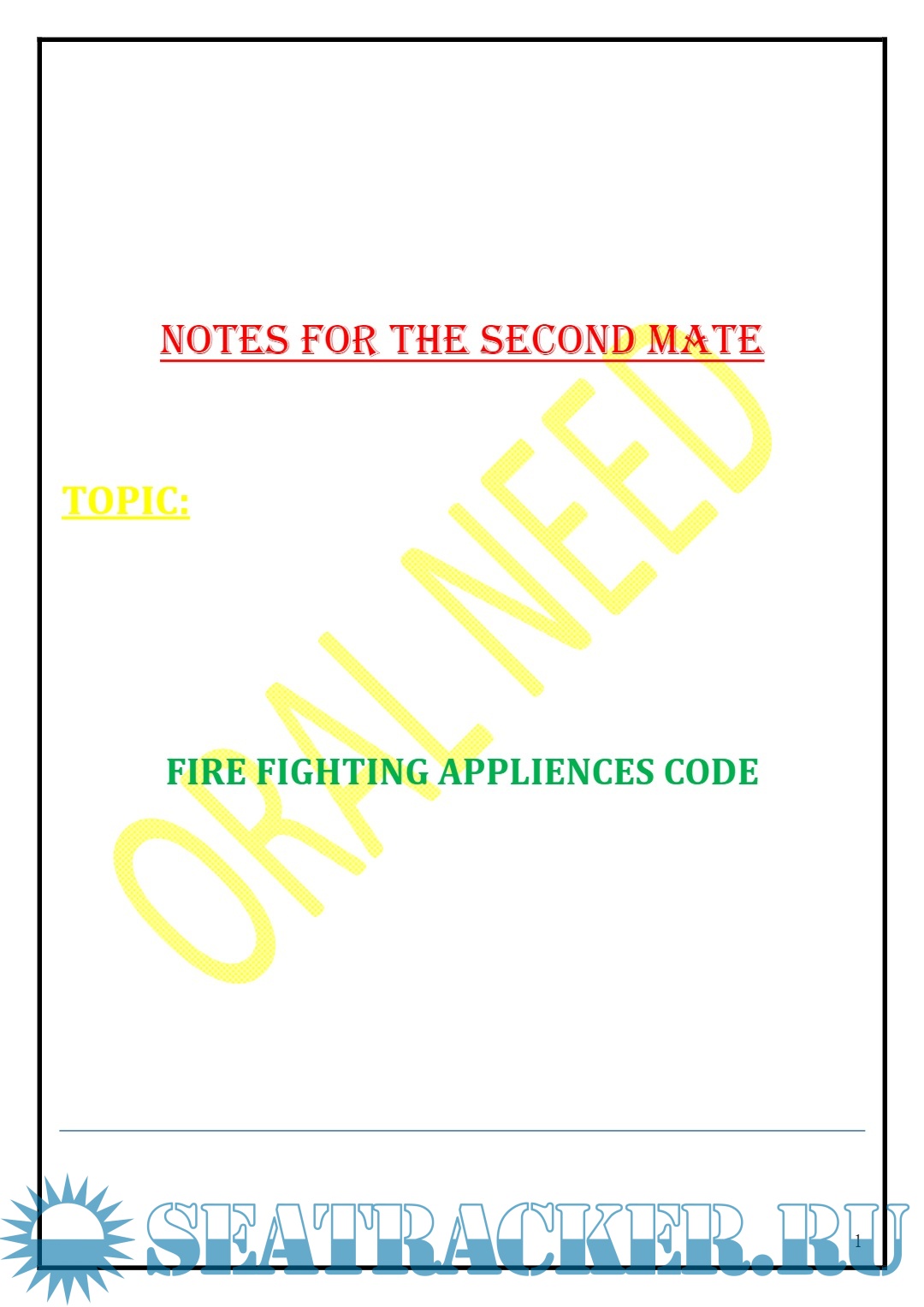 Description: Notes for The Second Mate: Fire Fighting Appliances Code.