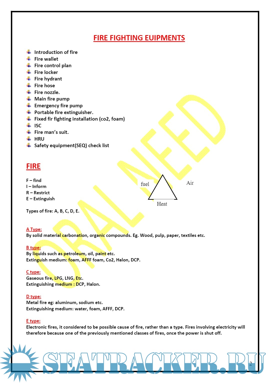 Year: 20xx Language: english Author: Oral Need Format: PDF Quality: eBook Pages count: 8 Description: Notes for The Second Mate: Fire Fighting Appliances Code.