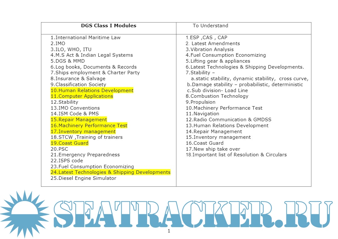 MEO Class I Oral Notes: Modules for D.G. Shipping, India