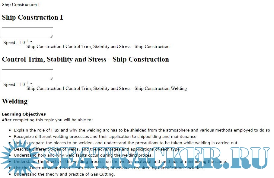 Year: 2020 Language: english Author: ADU Academy Genre: Training courses Publisher: ADU Academy India Private Limited Format: HTML Quality: eBook Pages count: Multiple Description: DGS (Directorate General of Shipping, India) E-Learning Content. Compilation of Online Course / Study Material for Chief Mate F.G. (Phase I) - Naval Architecture Paper I from https://dgsmtt.aduacademy.in/ (Login only available for Indian Seafarers having INDOS No.) Login Not Required for users downloading file. Course Content is already compiled as html without any restrictions. View in Chrome/Firefox or any other browser.